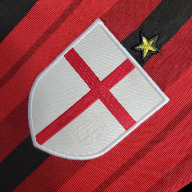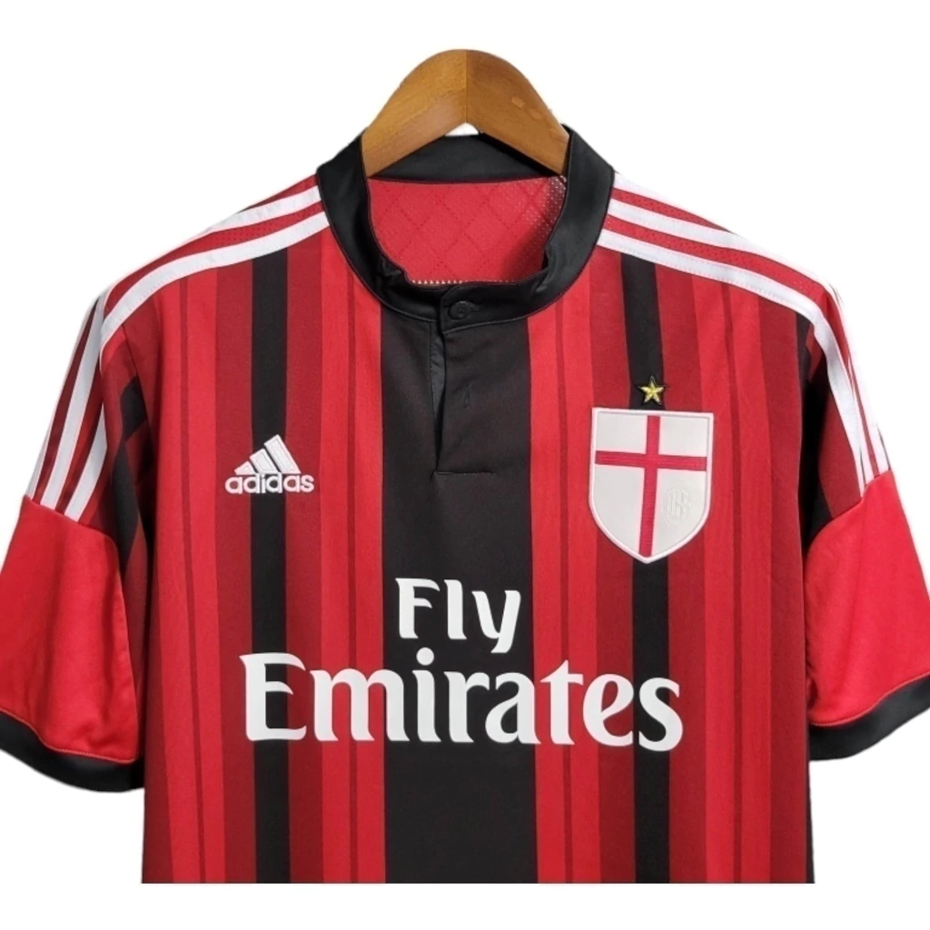 Camisa Retrô AC Milan I 2014/2015 – Masculina – Vermelha e preta com detalhes em branco