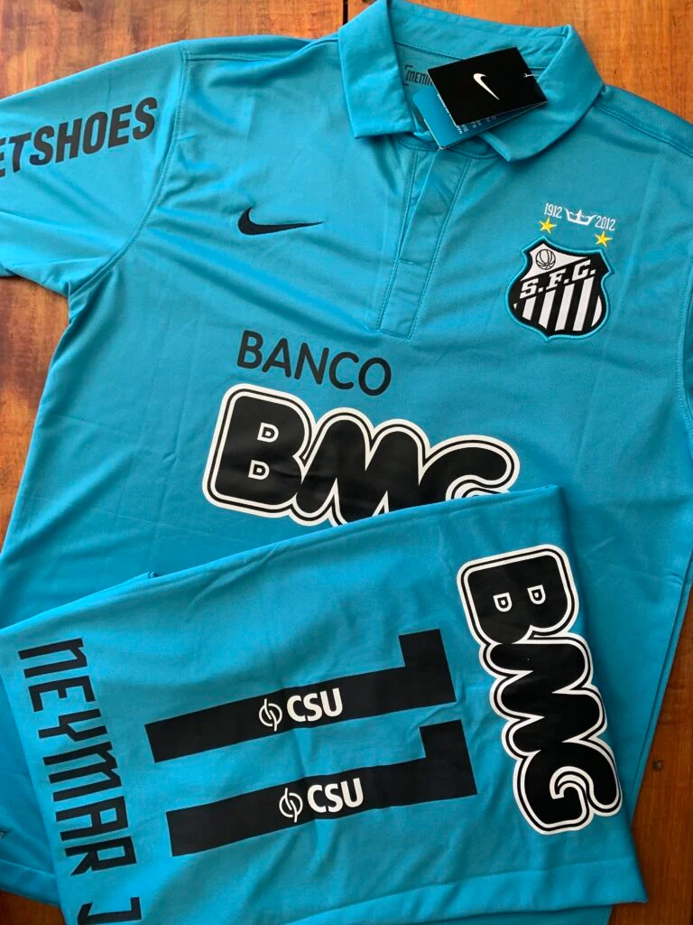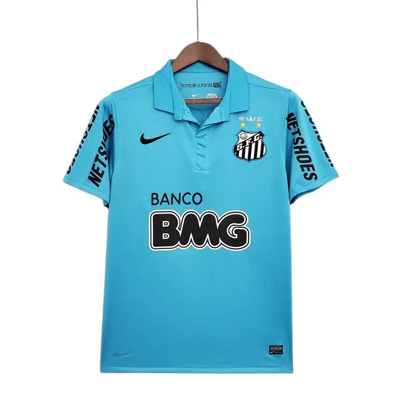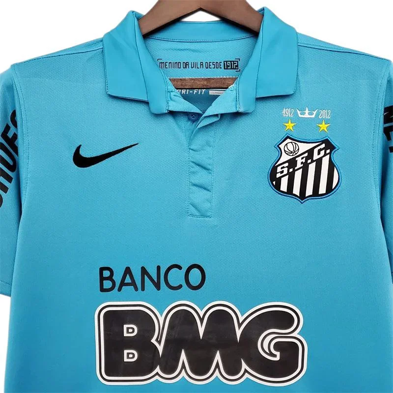 Camisa Retrô Santos azul 2012/13 já personalizada com nome e número Neymar.