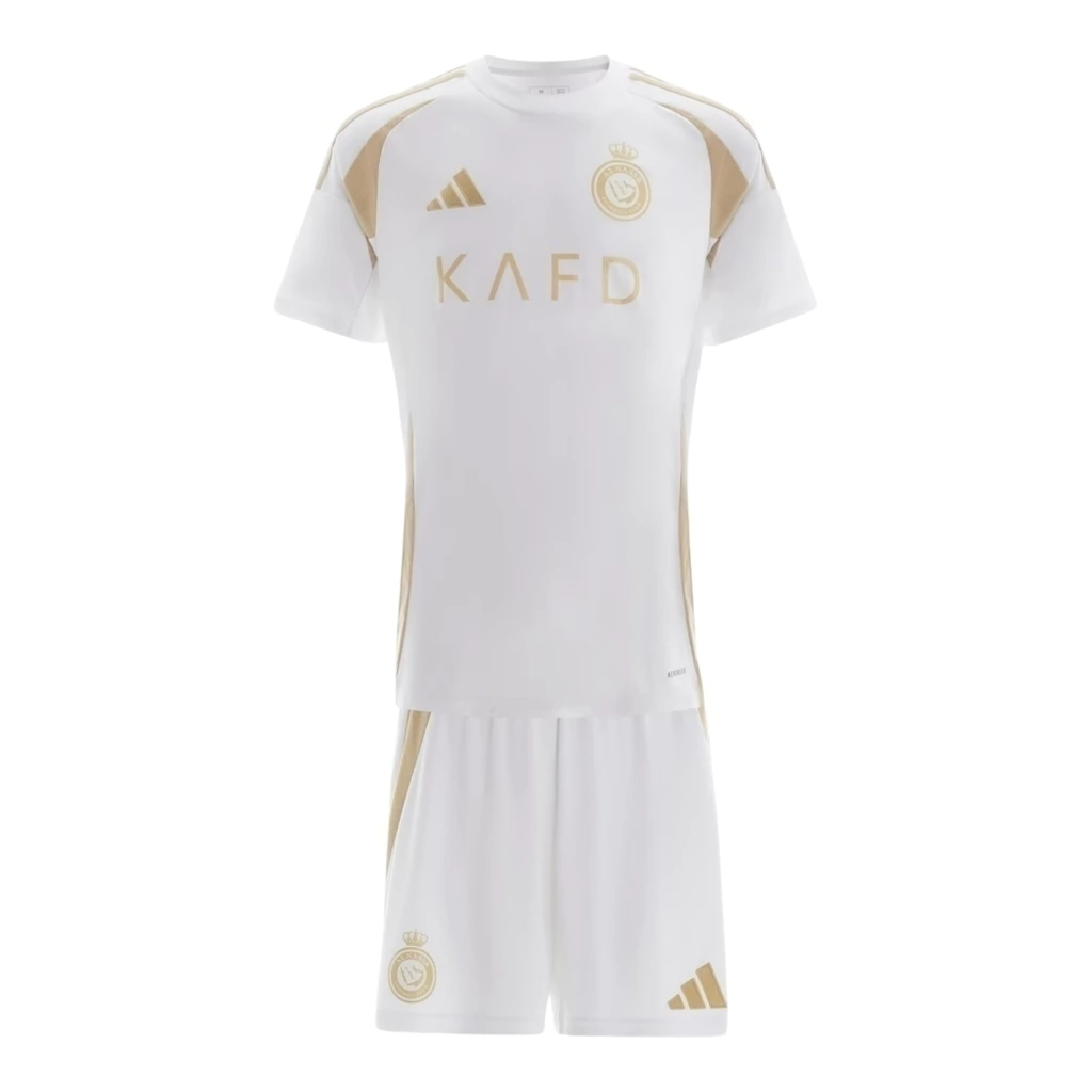 Kit Infantil Al-Nassr III 24/25 – Branca com detalhes em dourado